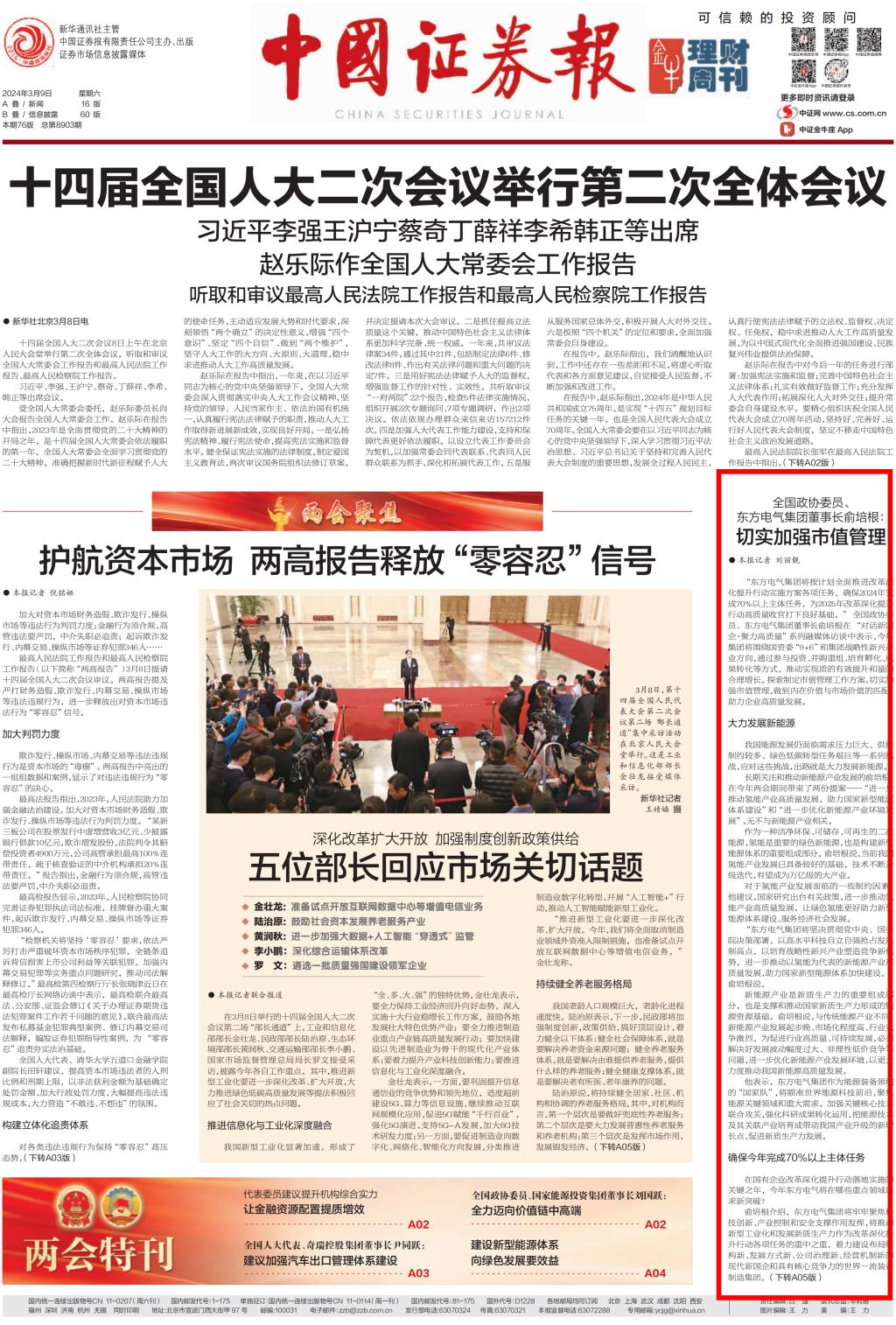 [中国证券报]全国政协委员、PA视讯在线官网集团董事长俞培根:全力以赴发展战略性新兴产业和未来产业