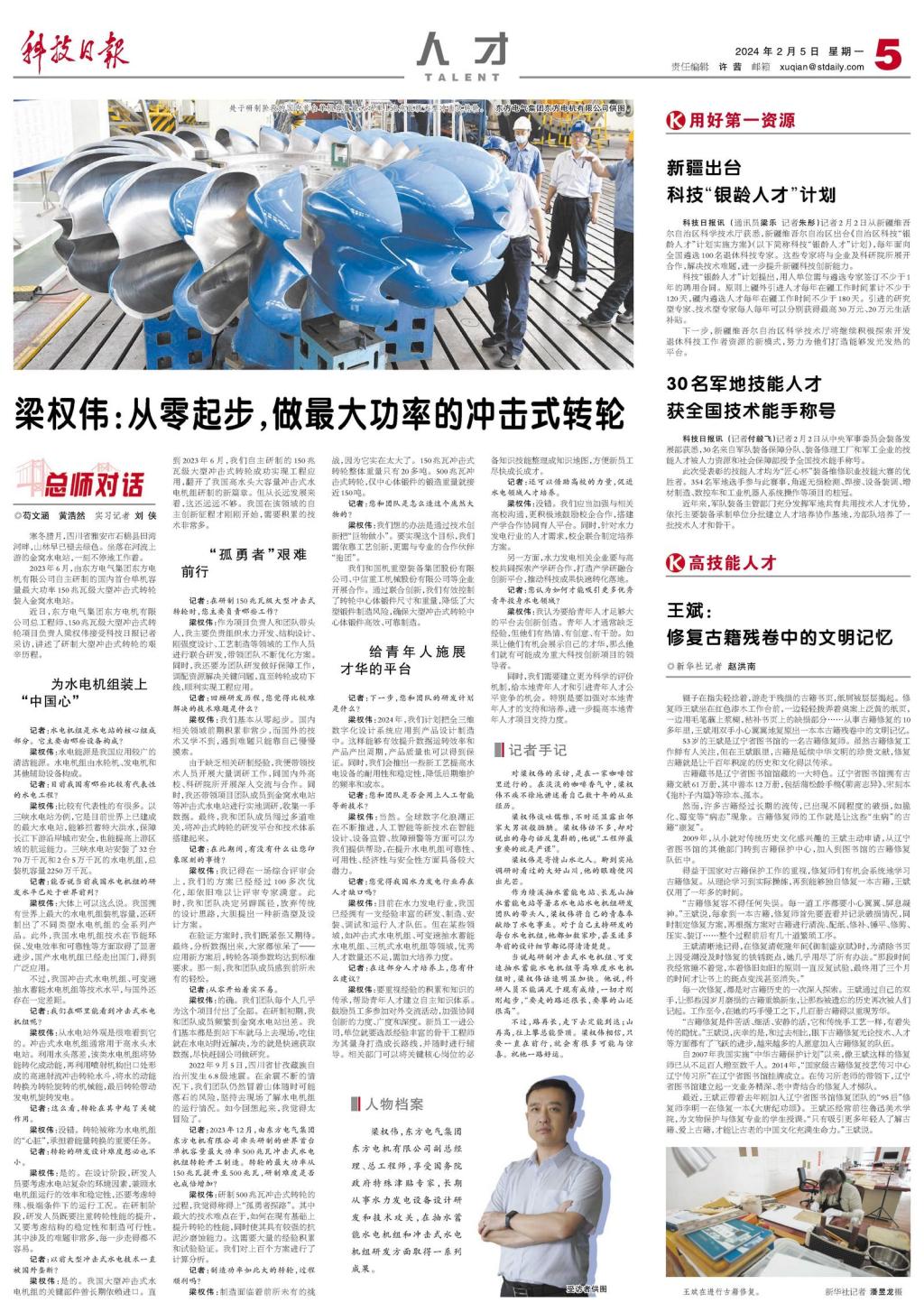 梁权伟:是的。我国大型冲击式水电机组的关键部件曾长期依赖进口。直到2023年6月,我们自主研制的150兆瓦级大型冲击式转轮成功实现工程应用,翻开了我国高水头大容量冲击式水电机组研制的新篇章。但从长远发展来看,这还远远不够。我国在该领域的自主创新征程才刚刚开始,需要积累的技术非常多。