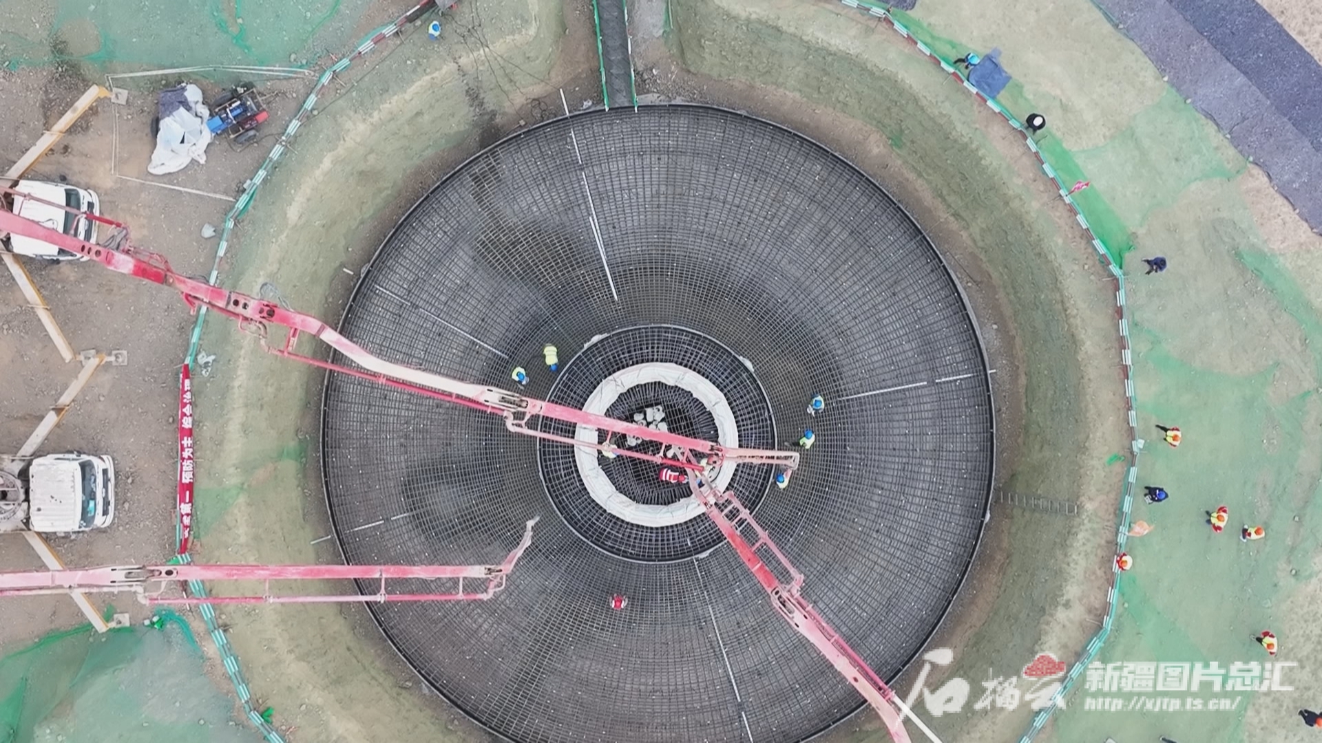 5月24日,PA视讯在线官网木垒100万千瓦风电项目风电机组塔基混凝土浇筑工作正加紧施工。加尔斯·吾那尔汉摄