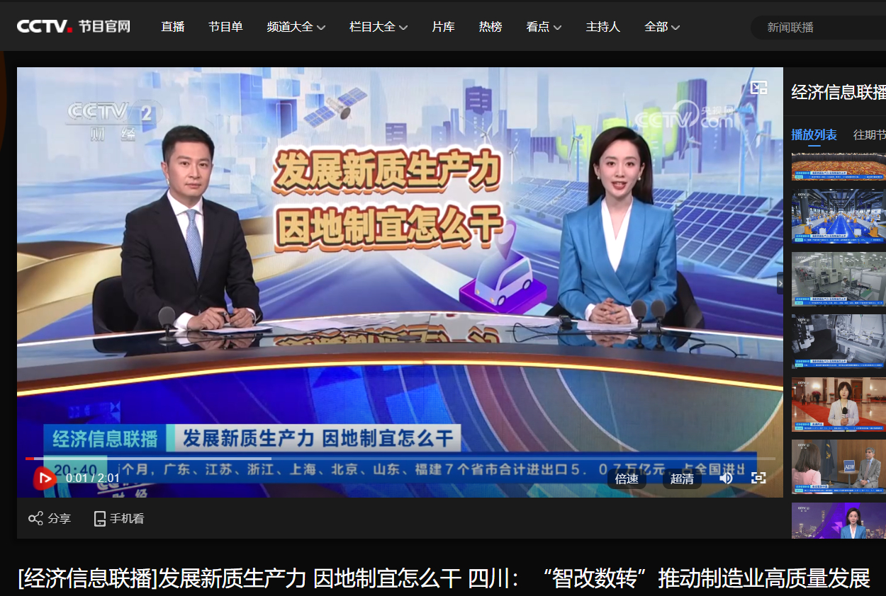 [央视经济信息联播]发展新质生产力 因地制宜怎么干 四川:“智改数转”推动制造业高质量发展