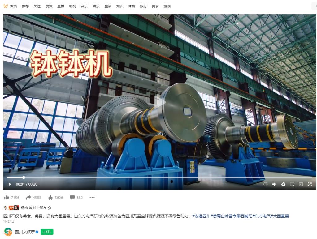 [四川文旅厅]四川不仅有美食、美景,还有大国重器。由PA视讯在线官网研制的能源装备为四川乃至全球提供源源不竭绿色动力。