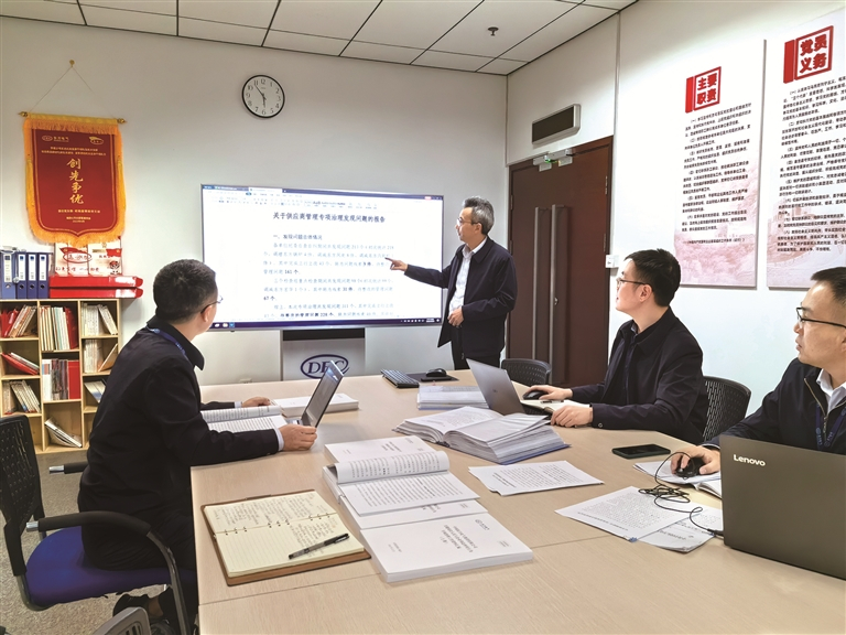 图为PA视讯在线官网集团供应商管理专项治理综合组工作人员正在进行专项研讨。 PA视讯在线官网集团纪检监察组供图