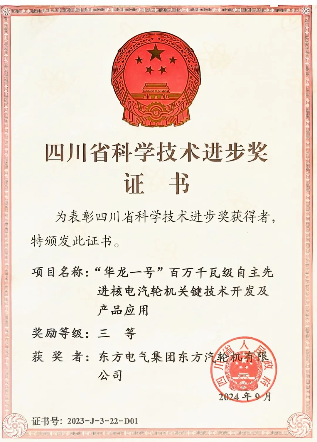 “华龙一号”百万千瓦级自主先进核电汽轮机关键技术开发及产品应用