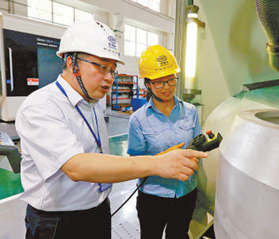 真正和一个个叶片、一件件“铁家伙”接触起来,赵永智全身心投入其中。夏天,蓝色工装上常常沾得处处都是油渍;冬天,双手常常冻得发麻,“肿得像面包”。受益于在厂区一线锻炼,赵永智很快将水轮机工件和装配过程了解透彻。
