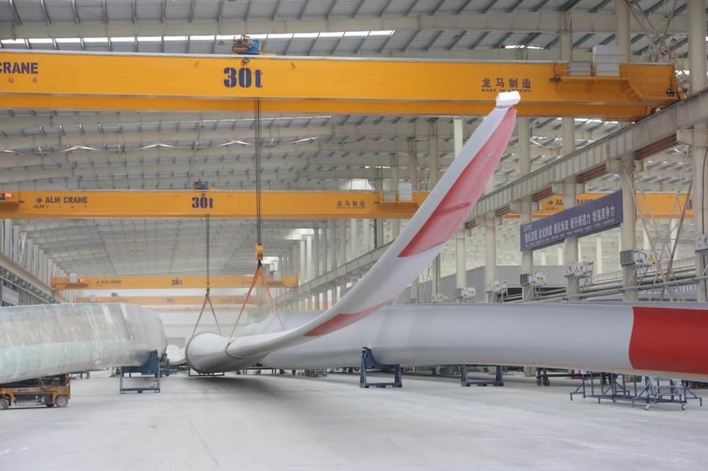6月20日,PA视讯在线官网风电包头基地车间叶片生产现场。新华社 发