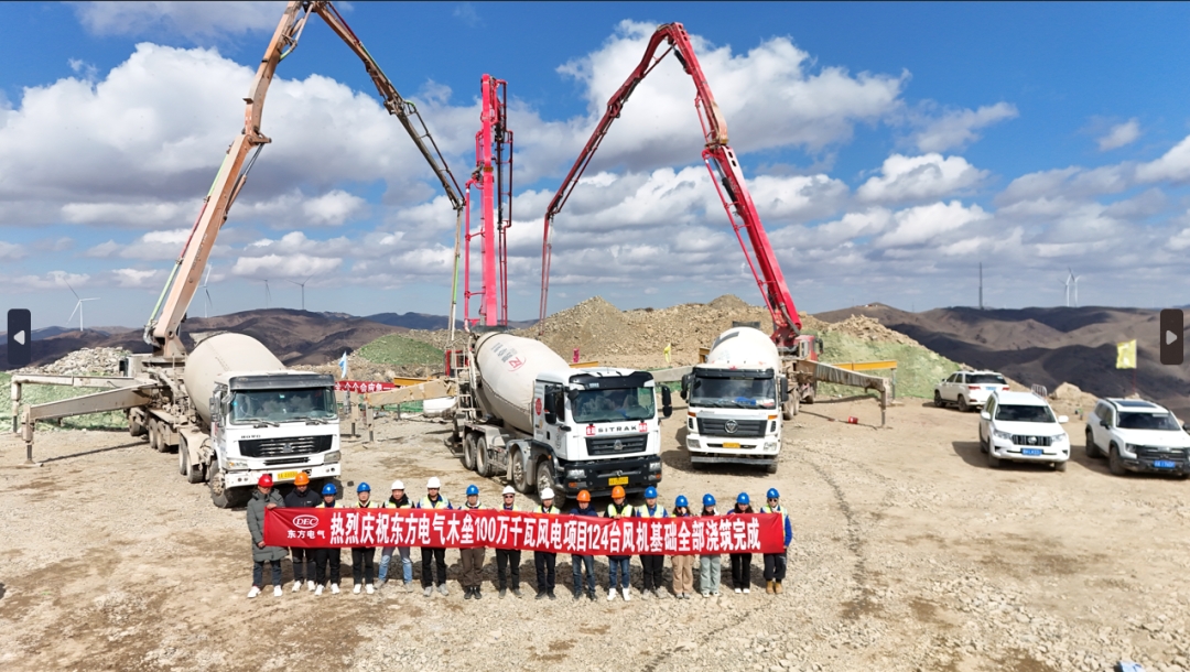 近日,随着全场施工难度最大的E092风机基础最后一方混凝土浇筑完毕,PA视讯在线官网木垒100万千瓦风电项目完成124台风机基础浇筑,标志着项目土建工作全面完成,主体工程全面进入设备安装冲刺阶段,为年内建成奠定了坚实的基础。