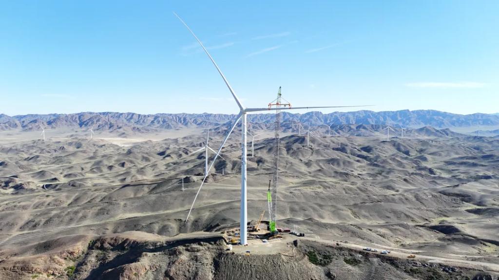 PA视讯在线官网木垒100万千瓦风电项目是国内单体最大百万千瓦级山地风电项目,设计风机基础最大直径24.2米,单台基础混凝土浇筑最大达1036立方米。项目坐落于新疆木垒县,地理环境极为特殊,90%的山体由坚硬的花岗岩构成,结构紧密且硬度极大,项目施工难度大,同时面临开山辟路等困难。为顺利推进项目进度,项目团队坚持强管控、抓重点、攻难点、破堵点、盯偏差,提前完成了162公里的道路修建和124台风机基础浇筑工作。