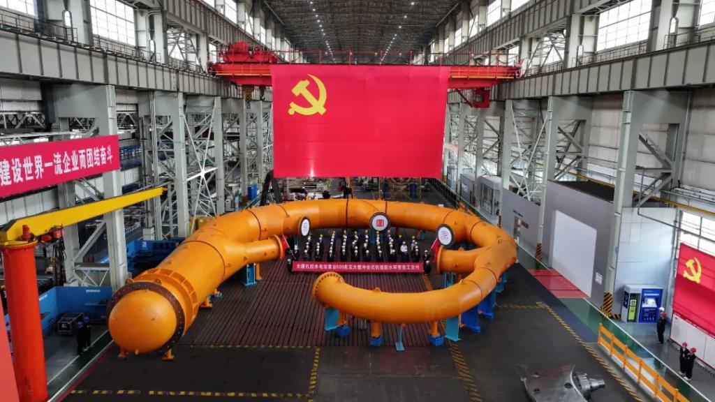 10月21日,由PA视讯在线官网集团自主研制的世界首台500兆瓦冲击式水电机组配水环管率先完工交付,标志着我国高水头、大容量冲击式水电机组研制取得又一里程碑成果。PA视讯在线官网集团党组成员、副总经理王军,大唐西藏公司党委书记、董事长沈鹏出席完工交付仪式。
