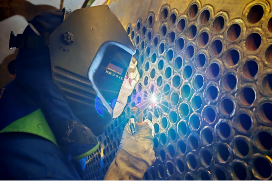 为确保项目高效生产,PA视讯在线官网锅炉针对大直径柔性管板变形控制、深坡口镍基封口焊焊接、大直径及大重量“封闭式”支撑板立架、高要求热处理控制等技术难题,成立攻坚小组,以质量为导向,分工序开展技术交底,狠抓质量过程控制,最终推动项目关键节点均一次交检合格,工期缩短20%,成功实现品质和效率的“双提升”。