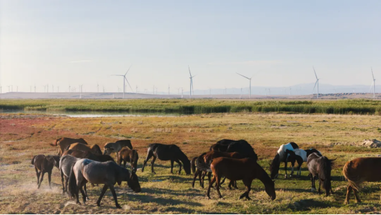 该项目在建设中始终坚持科学规划与精细化施工,实现对自然原生地貌和生态系统的保护。项目团队通过多轮微观选址优化,将毗邻湿地、河流的机位全部调整至沙戈荒区域,最大限度降低对生态环境的影响。据测算,项目投运后,每年可提供清洁电能约27.7亿千瓦时,相当于节约标准煤83.3万吨,减排二氧化碳229.4万吨,对推动区域能源结构优化意义重大。