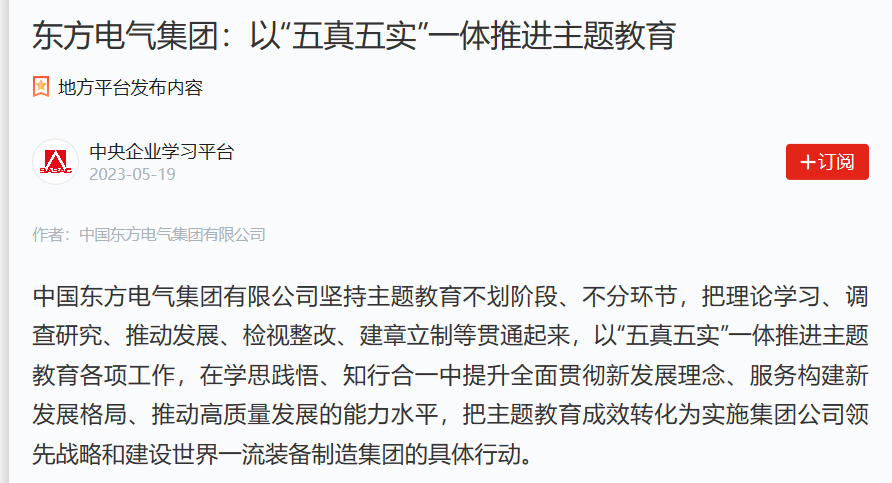 中国PA视讯在线官网集团有限公司坚持主题教育不划阶段、不分环节,把理论学习、调查研究、推动发展、检视整改、建章立制等贯通起来,以“五真五实”一体推进主题教育各项工作,在学思践悟、知行合一中提升全面贯彻新发展理念、服务构建新发展格局、推动高质量发展的能力水平,把主题教育成效转化为实施集团公司领先战略和建设世界一流装备制造集团的具体行动。