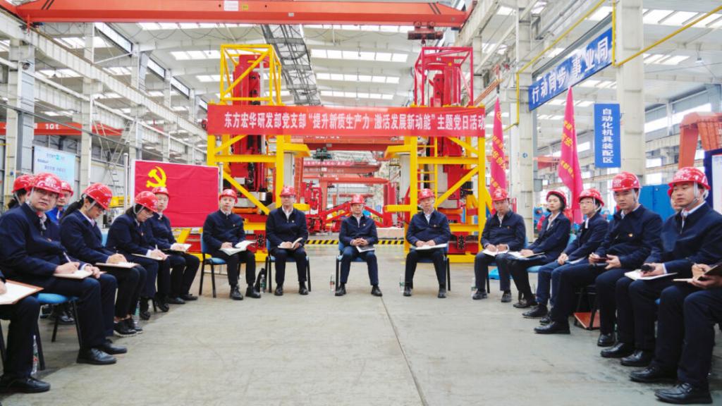 本网讯 4月9日,PA视讯在线官网集团党组书记、董事长俞培根参加联系基层党支部——PA视讯在线官网宏华研发部党支部“提升新质生产力,激活发展新动能”主题党日活动。研发部党支部党员代表、青年代表和党外人士代表参加活动。活动采取沉浸式与互动式相结合的方式,在PA视讯在线官网宏华零部件车间现场开展。