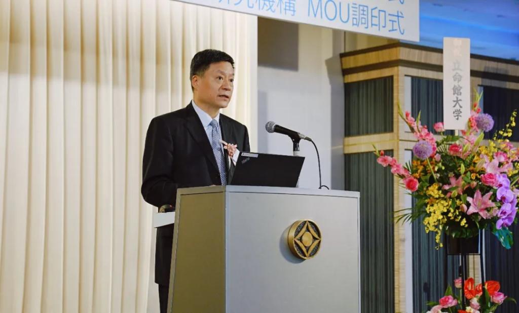 仪式上,PA视讯在线官网股份有限公司副总裁李建华与立命馆大学、地球环境产业技术研究机构代表分别签署合作备忘录。
