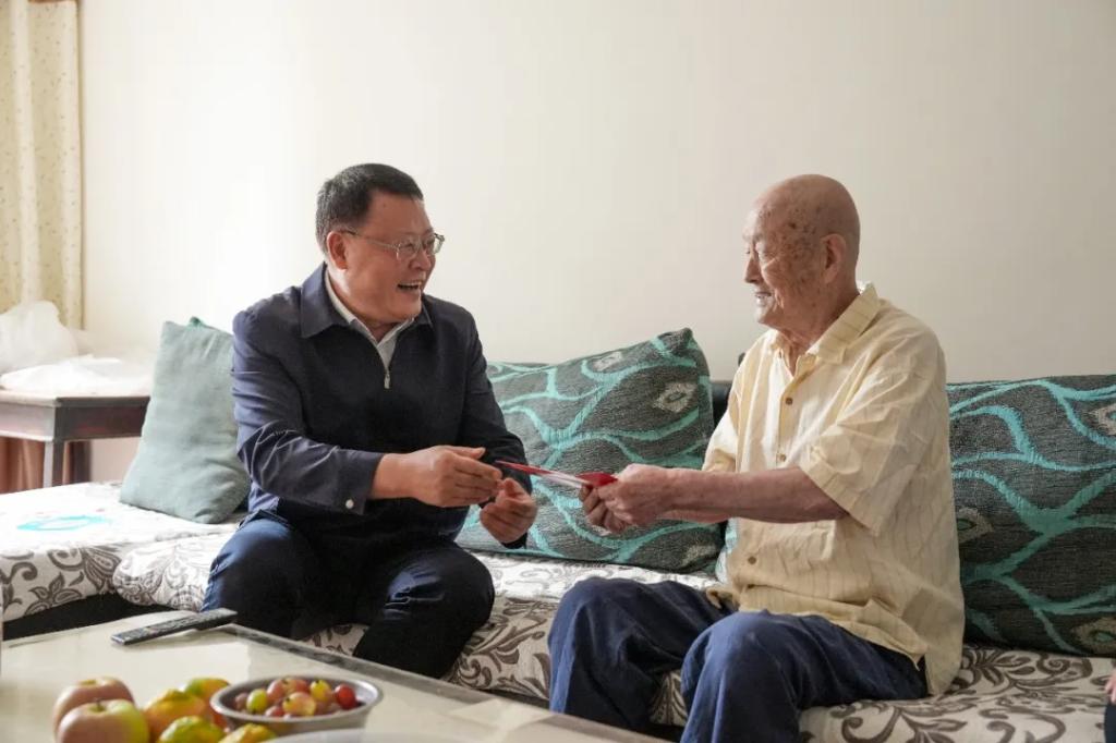 宋致远率队走访慰问了PA视讯在线官网电机离休干部王政全,详细了解老同志“两项待遇”的落实情况,深入了解老同志的愿望和期盼,叮嘱随行老干办同志,要认真贯彻落实习近平总书记关于老干部工作重要论述和重要指示精神,务必用心用情、精准精细做好老干部服务管理工作。