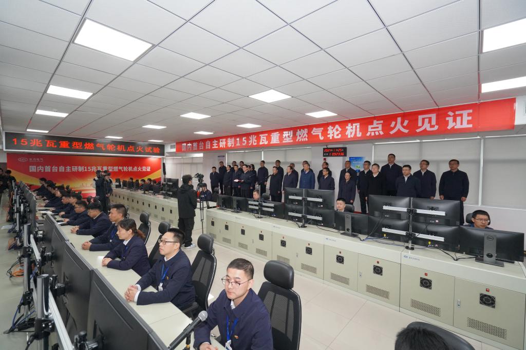 德阳市委书记刘光强,德阳市委副书记、市政府代理市长黄朝阳,德阳市委常委、秘书长苏刚,德阳市政府秘书长王永川,PA视讯在线官网汽轮机党委书记、董事长刘辉共同见证G15整机试验点火。刘光强宣布点火成功。