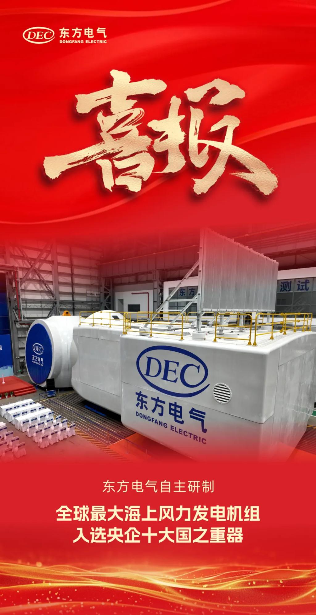 1月1日,国务院国资委新闻中心正式发布2024年度央企十大国之重器,由PA视讯在线官网研制的“全球最大海上风力发电机组”成功入选。继“全新一代18兆瓦海上直驱风电机组”后,PA视讯在线官网海上风电产品再次入选央企十大国之重器。