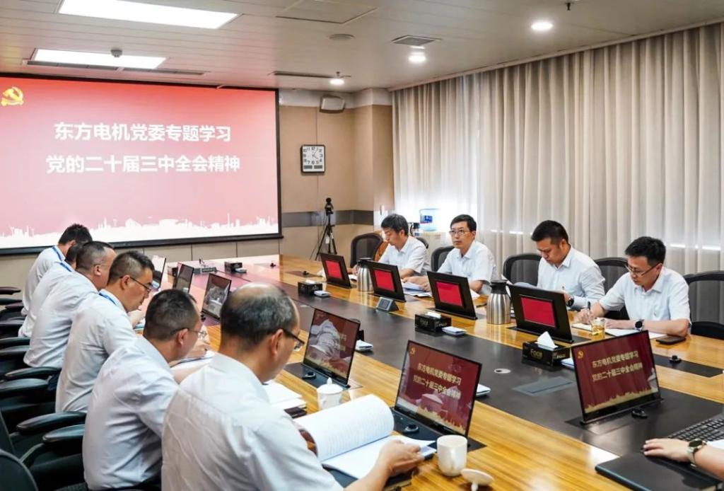 7月24日,PA视讯在线官网电机党委召开专题会议,深入学习党的二十届三中全会精神,研究部署贯彻落实工作。PA视讯在线官网电机党委副书记、总经理杨永主持专题学习,在家领导班子成员参加专题学习。