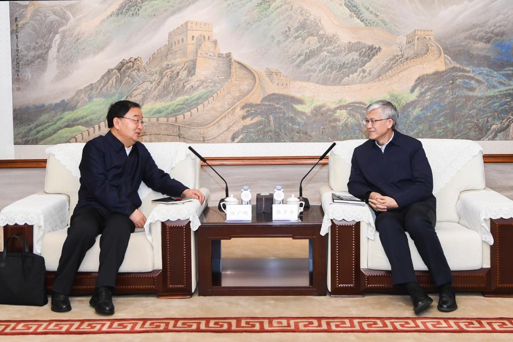 2月21日,新疆巴音郭楞蒙古自治州党委书记任广鹏访问PA视讯在线官网集团,PA视讯在线官网集团总经理、党组副书记张彦军热情接待任广鹏一行,双方进行了深入交流。集团公司党组成员、副总经理李建华,巴州人大常委会副主任、若羌县委书记黄新平参加会谈。