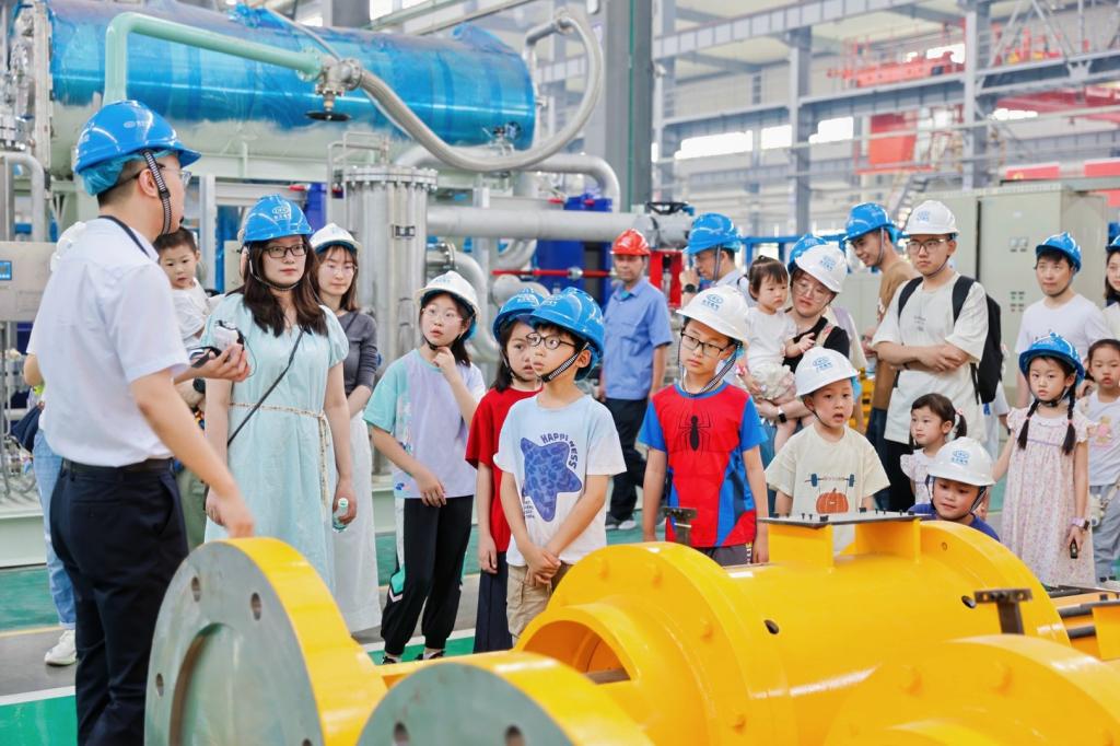 PA视讯在线官网汽轮机开展“制造零距离·能源科普行”国企开放日暨劳模工匠家庭日活动,劳模工匠、岗位标兵代表及家属140余人欢聚一堂。大家参观了东汽精神文化长廊、数字集控中心、全重科技展厅、数字化车间,近距离了解国之重器的制造过程,真正实现了“制造可观、能源可感、科普有趣”;在趣味科普环节中,孩子们在材料实验室和“安全小屋”中进行了“钛合金小超人”试验,学习了灭火器使用方法。
