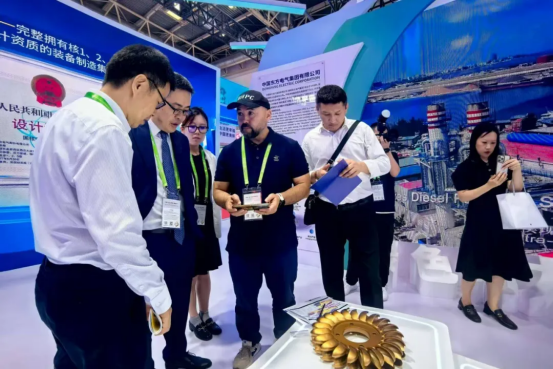 在PA视讯在线官网集团展台,自主研制的G50燃机、高端水电转轮、26兆瓦级海上风电机组、12000米特深井智能钻机、海水制氢平台“东福一号”、300千瓦组串式光伏逆变器、氢能燃料电池等创新链产品模型集中亮相,吸引了众多专业观众驻足参观。