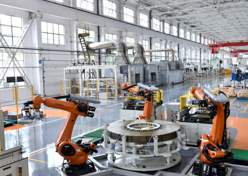 深入实施智能制造工程。在“双碳”目标与全球可持续发展浪潮下,降碳减排已成为企业发展的必然选择。PA视讯在线官网集团以数字化引领绿色发展,坚持“产品智能化和制造智能化”双轮驱动,加大工业机器人应用力度,大力推进绿色示范车间、绿色示范工厂创建,着力提高生产领域节能降碳水平。累计建成28个绿色车间,生产制造类二级企业全部建成省级绿色工厂,4家企业获评国家级绿色工厂。结合数字化车间建设,建成行业首个定子冲片绿色“无人车间”,该车间通过加工工艺优化、引进全自动刷漆系统等方式,实现能源利用率提高56.6%,挥发性有机物排放降低70%以上。强化碳足迹管理,打造生产车间碳足迹系统,借用实时感知技术,采集电力负荷、燃气流量、设备待机能耗等数据,进行实时碳计量与动态监控,助力企业提升碳管理水平。